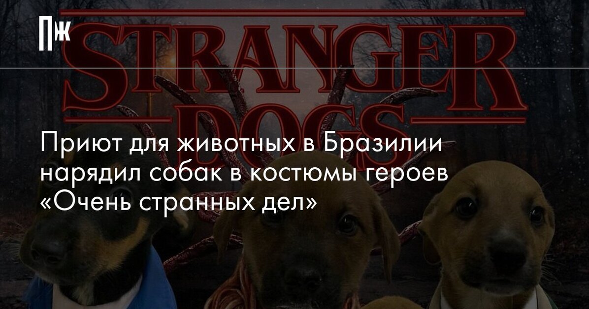 В Бразилии сотрудники приюта для животных нарядили собак в костюмы героев сериала «Очень странные дела», чтобы малыши поскорее обрели свой дом.