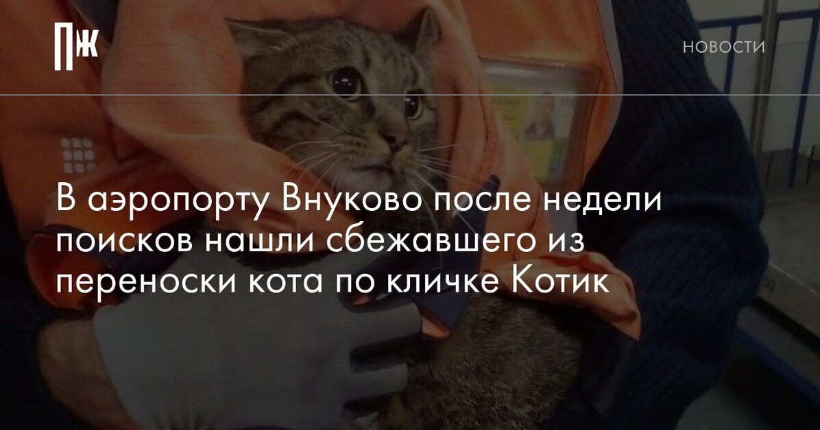 В аэропорту Внуково после недели поисков нашли сбежавшего из переноски кота по кличке Котик