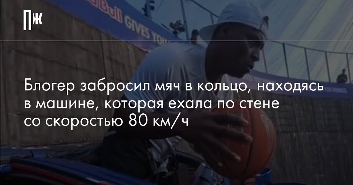 Блогер забросил мяч в кольцо, находясь в машине, которая ехала по стене со скоростью 80 км/ч