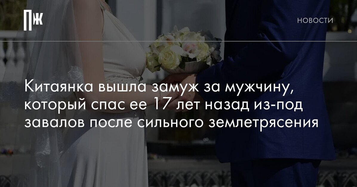 Китаянка вышла замуж за мужчину, который спас ее 17 лет назад из-под завалов после сильного землетрясения