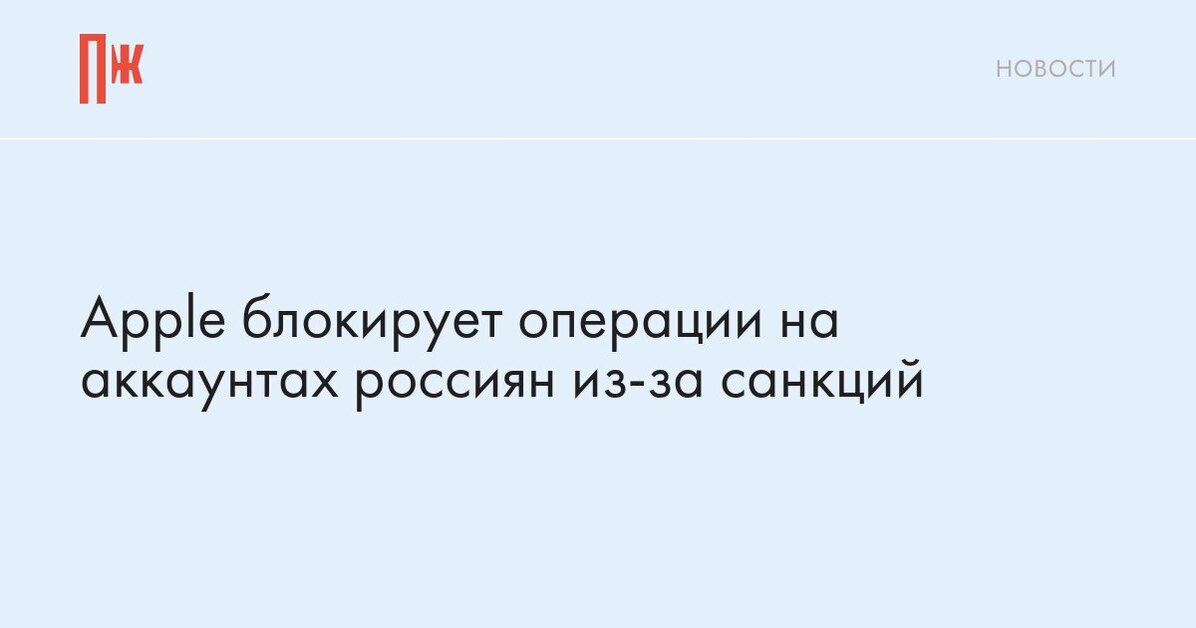 Apple начала ограничивать покупки, оформление подписок и другие операции для аккаунтов россиян, чьи данные полностью или частично совпадают со сведениями о людях из санкционных списков США или других стран. Об этом сообщает портал IPhones.ru.