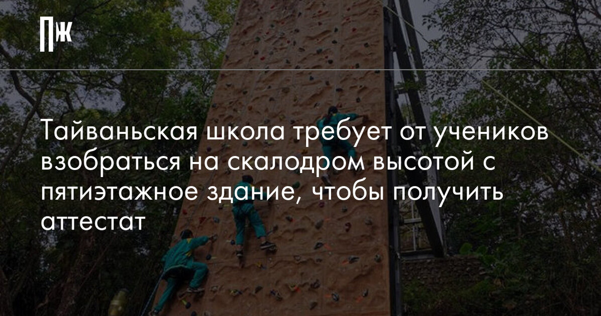 Тайваньская школа требует от учеников взобраться на скалодром высотой с пятиэтажное здание, чтобы получить аттестат