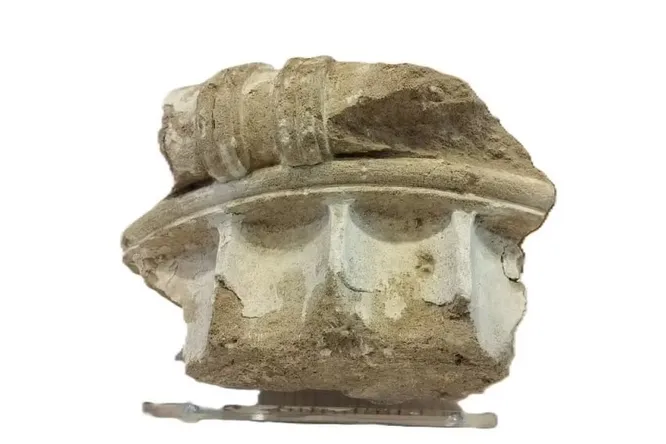 «Это фрагмент капители ионического архитектурного ордера, выполненный из известняка, местами сохранившего остатки штукатурки. Максимальные сохранившиеся размеры фрагмента — 24 см в высоту, 33,5 см в ширину», — говорится в сообщении.