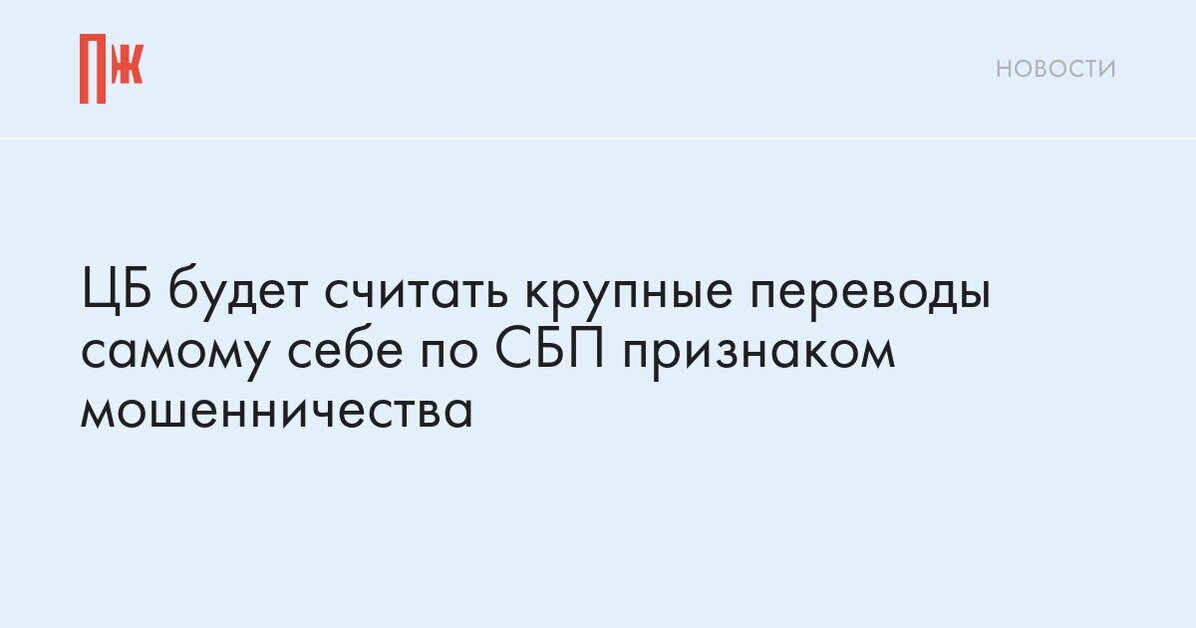 ЦБ будет считать крупные переводы самому себе по СБП признаком мошенничества