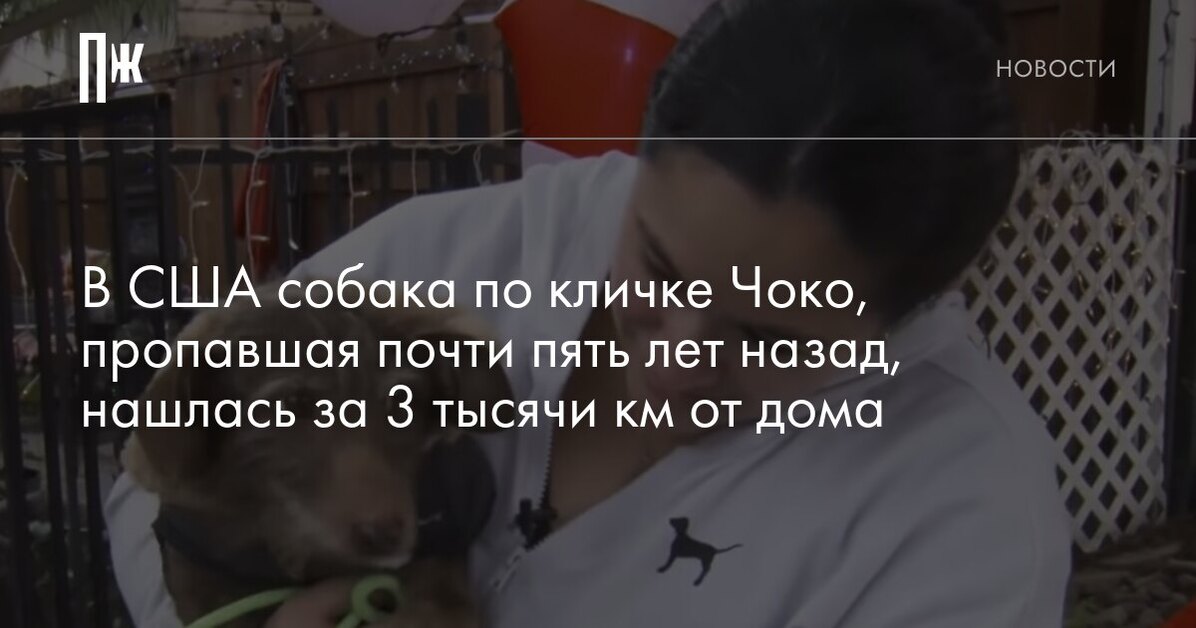 В США собака по кличке Чоко, пропавшая почти пять лет назад, нашлась за три тысячи км от дома