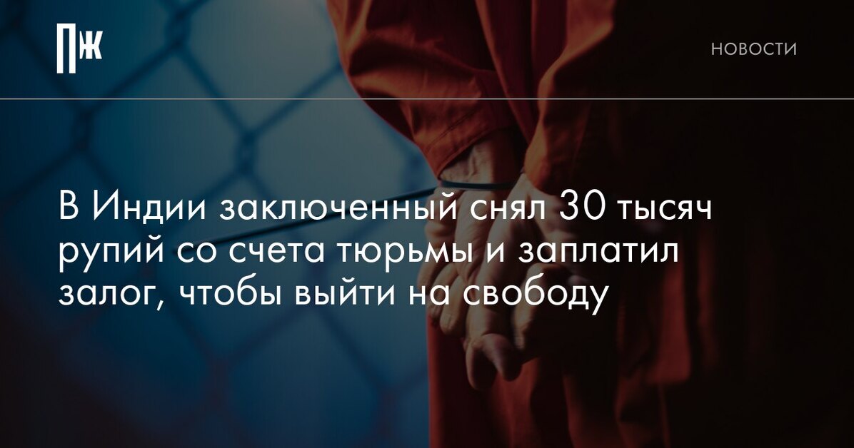 В Индии заключенный снял 30 тысяч рупий со счета тюрьмы и заплатил залог, чтобы выйти на свободу