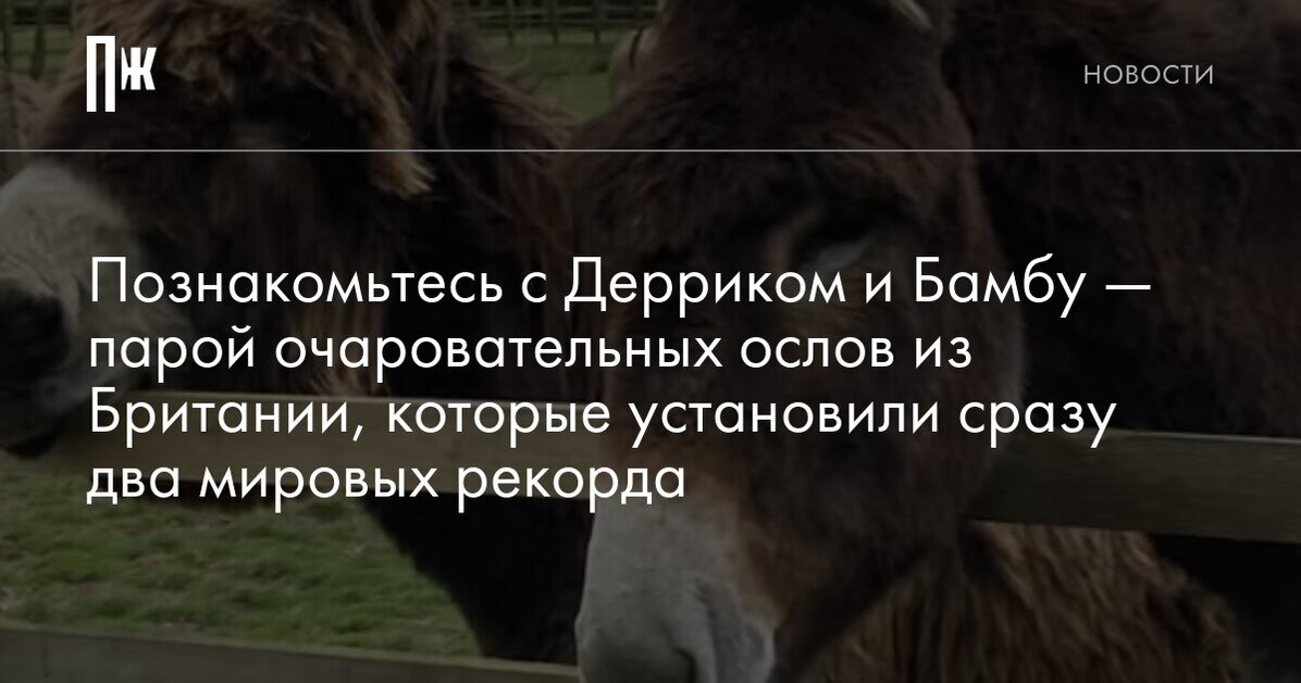 Познакомьтесь с Дерриком и Бамбу — парой очаровательных ослов из Британии, которые установили сразу два мировых рекорда
