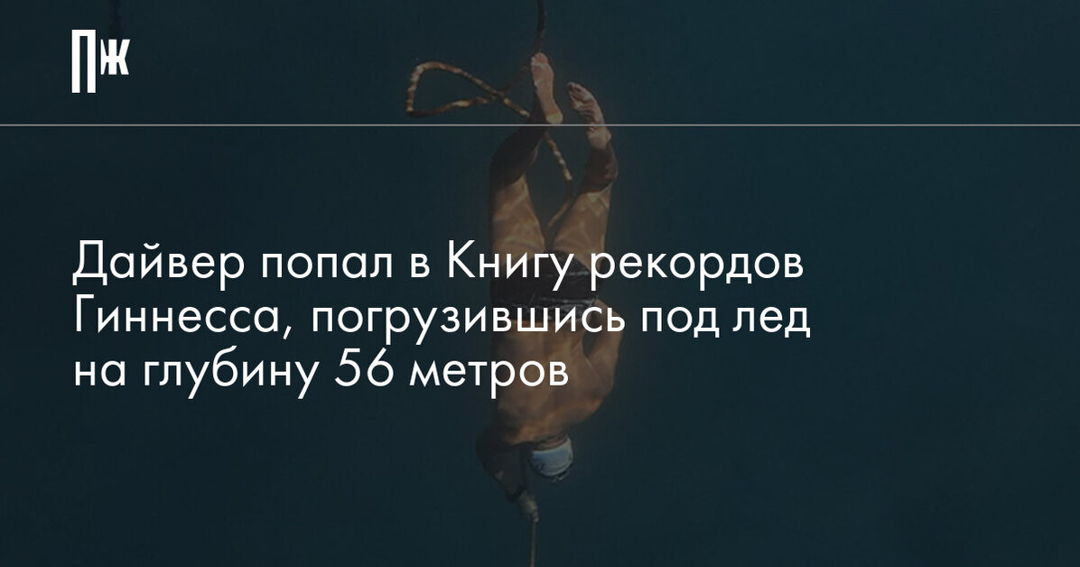Дайвер попал в Книгу рекордов Гиннесса, погрузившись под лед на глубину 56 метров