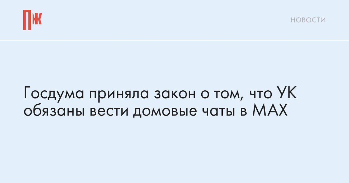 Госдума приняла закон о том, что УК обязаны вести домовые чаты в MAX