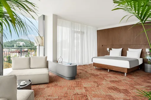 Инфраструктура санатория также включает собственный пляжный клуб, круглогодичный акватермальный комплекс с бассейнами с минеральной водой, многоуровневый фитнес-центр и йога-террасу. Для полного восстановления гостям доступны бювет с шестью видами минеральной воды, салон красоты, зоны для отдыха и профессионально организованные детские пространства.