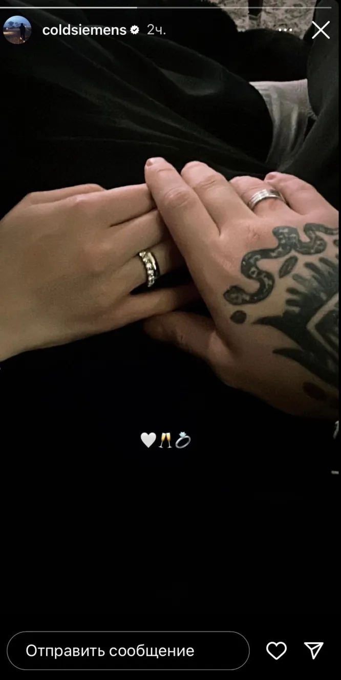 Рэпер, который особо не делится подробностями личной жизни, внезапно выложил снимок, на котором предположительно запечатлены его рука и рука девушки с кольцами на безымянных пальцах.