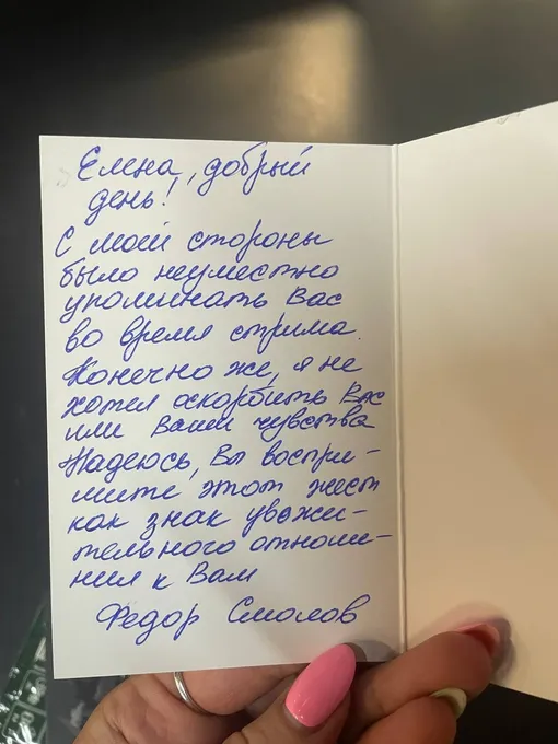 «Засчитано, маме понравилось», — подписал фотографии букета и открытки стример.