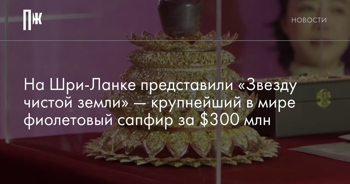 На Шри-Ланке представили «Звезду чистой земли» — крупнейший в мире фиолетовый сапфир стоимостью свыше $300 млн