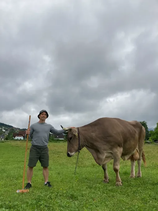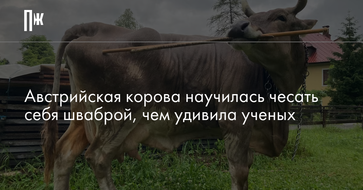 Австрийская корова научилась чесать себя шваброй, чем удивила ученых