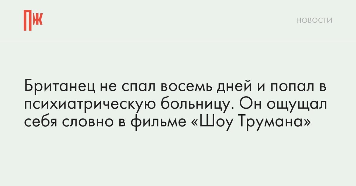 Британец не спал восемь дней и попал в психиатрическую больницу. Он ощущал себя словно в фильме «Шоу Трумана»