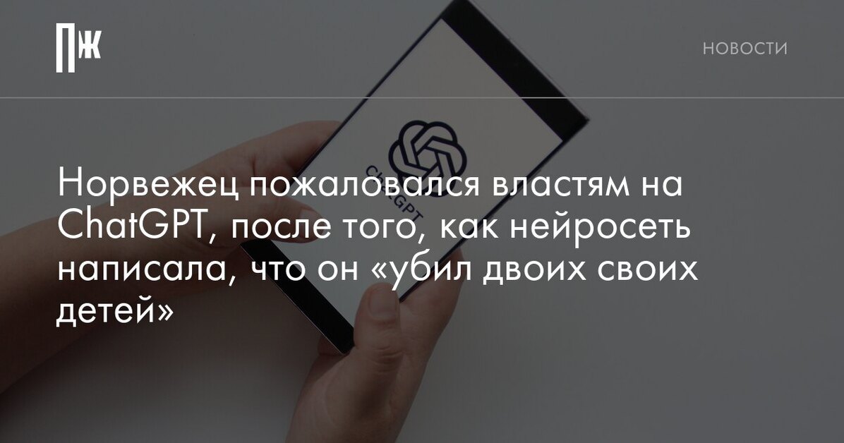 Норвежец пожаловался властям на ChatGPT после того, как нейросеть написала, что он «убил своих двоих детей»