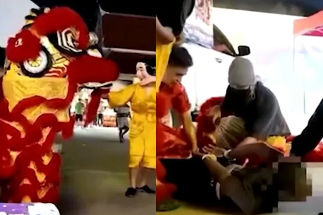 Полицейские решили присоединиться к процессии танцующих львов, чтобы постепенно приблизиться к подозреваемому и арестовать его. Операция проходила на храмовой ярмарке во время празднования Китайского Нового года.