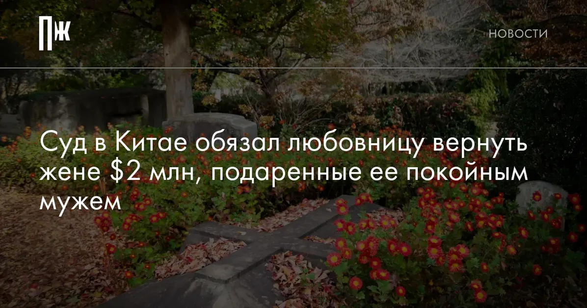 Суд в Китае обязал любовницу вернуть жене $2 млн, подаренные ее покойным мужем