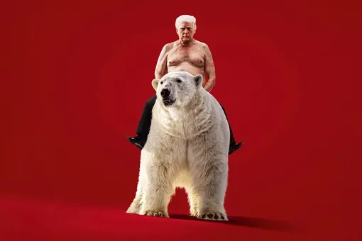 Британский журнал The Economist опубликовал обложку нового номера с Дональдом Трампом, который сидит верхом на белом медведе на красном фоне.