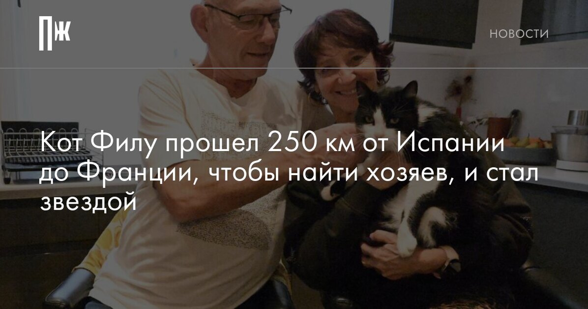 Кот Филу прошел 250 км от Испании до Франции, чтобы найти хозяев, и стал звездой