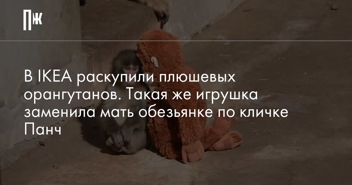 В IKEA раскупили плюшевых орангутанов. Такая же игрушка заменила мать обезьянке по кличке Панч