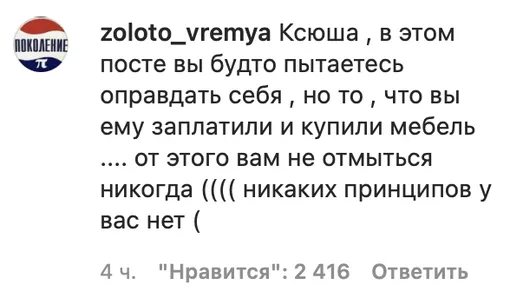 Еще пользователи обвинили журналистку в беспринципности, поскольку она заплатила Мохову за интервью и купила ему мебель. По их мнению, Собчак стремится «поймать хайп на свежачке». Ранее Mash опубликовал запись телефонного разговора, в котором маньяк рассказывает, что ему дали 50 тысяч за участие в фильме. Журналистка подтвердила съемки фильма и сказала, что «денежных переговоров с Моховым» не вела.