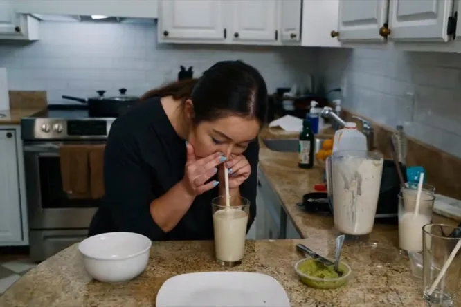 Девушка смешивает свои блюда в блендере, после чего употребляет носом получившуюся массу через соломинку. Напитки, в том числе кофе, она тоже предпочитает употреблять через нос. Однако врачи предупреждают об опасности такого способа питания.