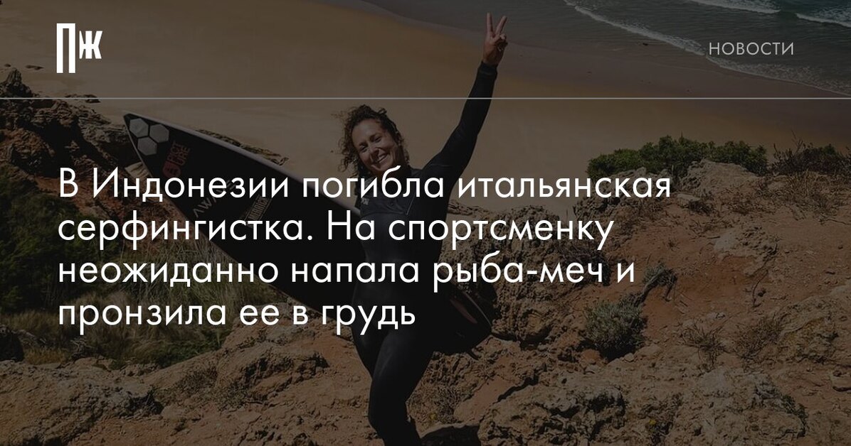 В Индонезии погибла итальянская серфингистка. На спортсменку неожиданно напала рыба-меч и пронзила ее в грудь