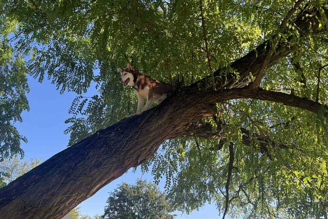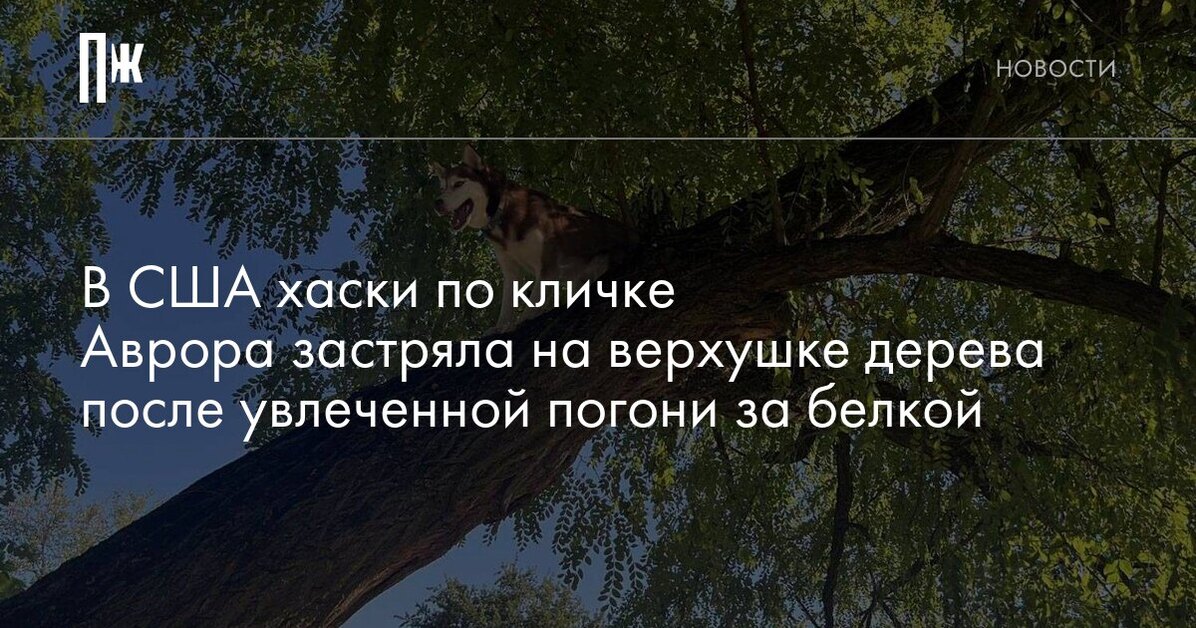 В США хаски по кличке Аврора застряла на верхушке дерева после увлеченной погони за белкой