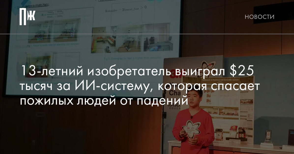 13-летний изобретатель выиграл $25 тысяч за ИИ-систему, которая спасает пожилых людей от падений