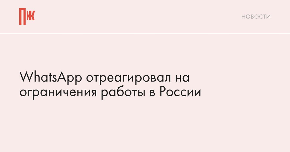 WhatsApp (принадлежит Meta, которая признана экстремистской и запрещена) отреагировал на ограничения работы в России. Заявление представителей мессенджера передает Reuters.
