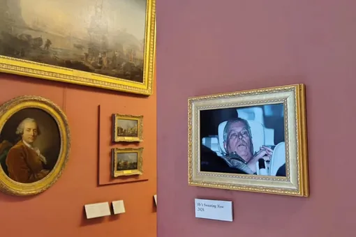 Активисты повесили на одну из стен музея снимок, сделанный после выхода Эндрю из полицейского участка в Норфолке. На снимке Маунтбеттен-Виндзор сидит на заднем сиденье автомобиля. Под фотографией активисты разместили подпись: «Он сейчас потеет».