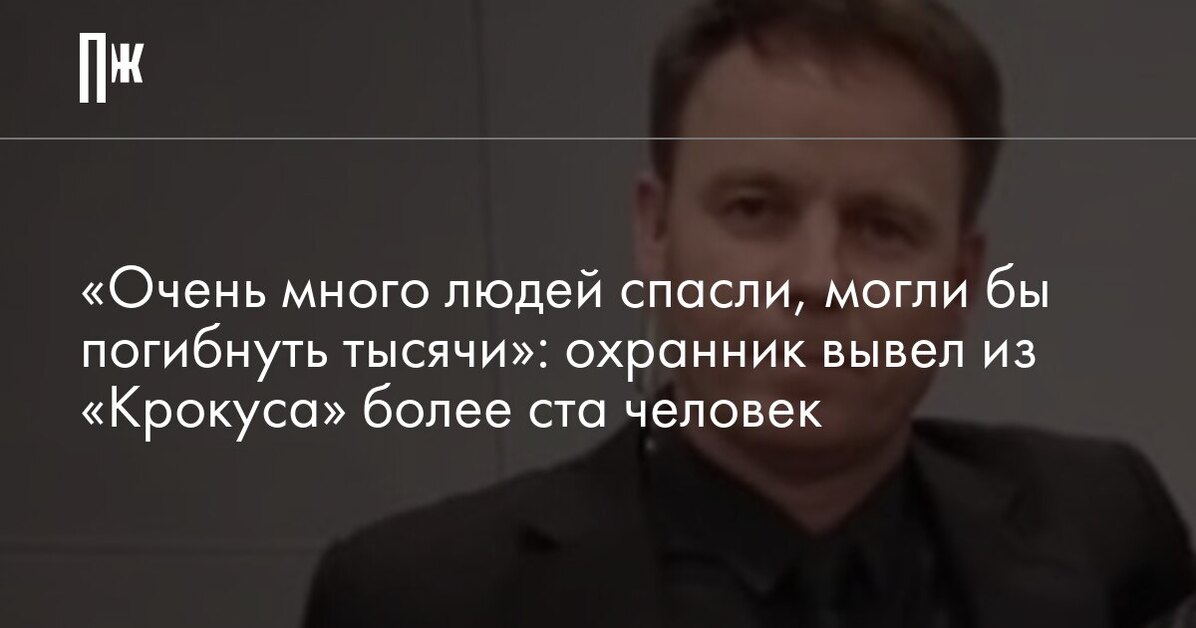 По словам, ему удалось вывести из здания больше ста человек через подвал, склады и подземную парковку, а благодаря общим стараниям сотрудников «Крокуса» гибели избежали «тысячи».