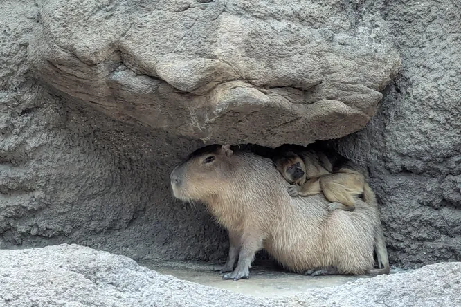 Обезьяна-ревун неожиданно подружилась с капибарой в Денверском зоопарке