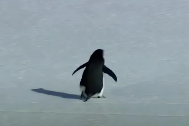 В сети завирусилась сцена с пингвином, который вместо того чтобы следовать за колонией к океану, в решающий момент поворачивает в другую сторону и идет вглубь Антарктиды, где нет пищи и каких-либо шансов на выживание.