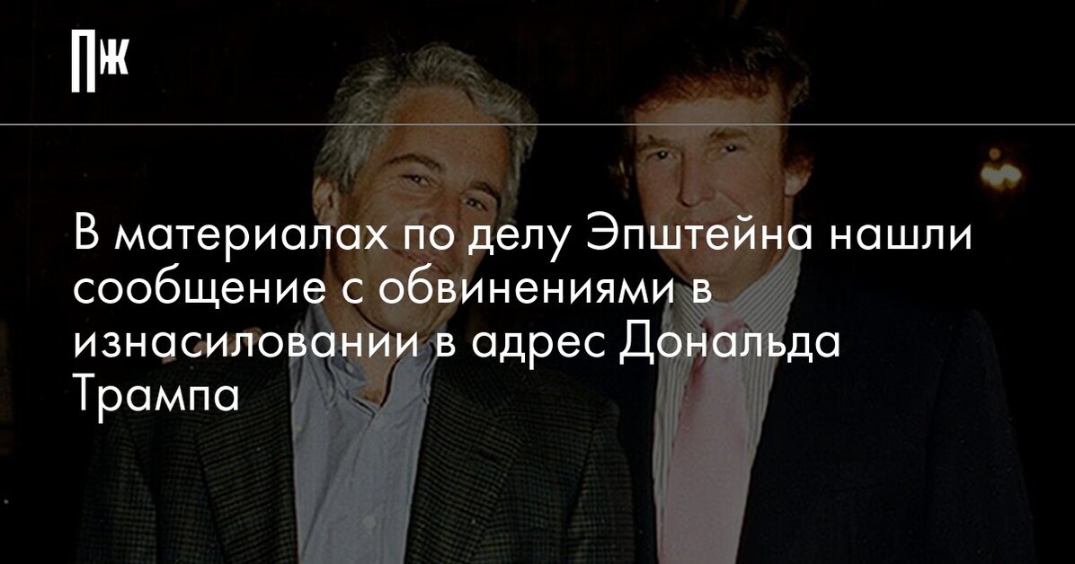 В материалах по делу Эпштейна нашли сообщение с обвинениями в изнасиловании в адрес Дональда Трампа