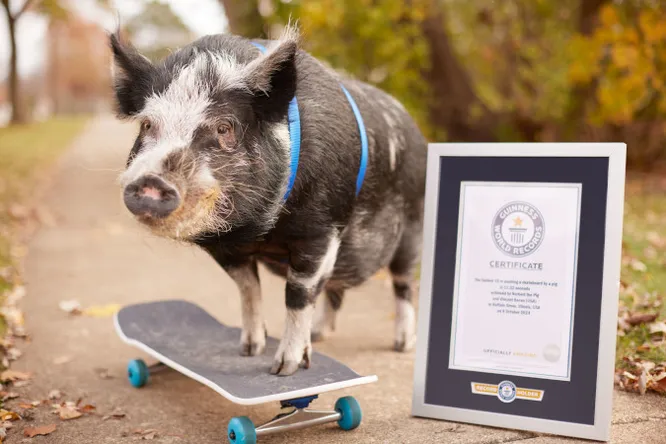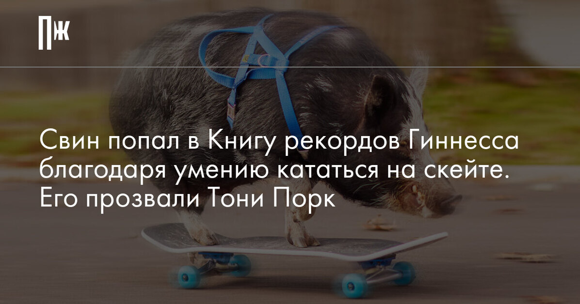Свин попал в Книгу рекордов Гиннесса благодаря умению кататься на скейте. Его прозвали Тони Порк