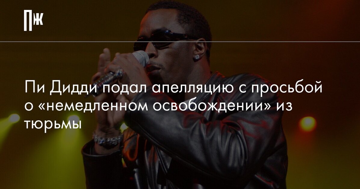 Пи Дидди (настоящее имя — Шон Комбс) подал апелляцию с просьбой о «немедленном освобождении» из тюрьмы. Он утверждает, что наказание, назначенное ему судом, было «чрезмерным». Об этом сообщает Variety.