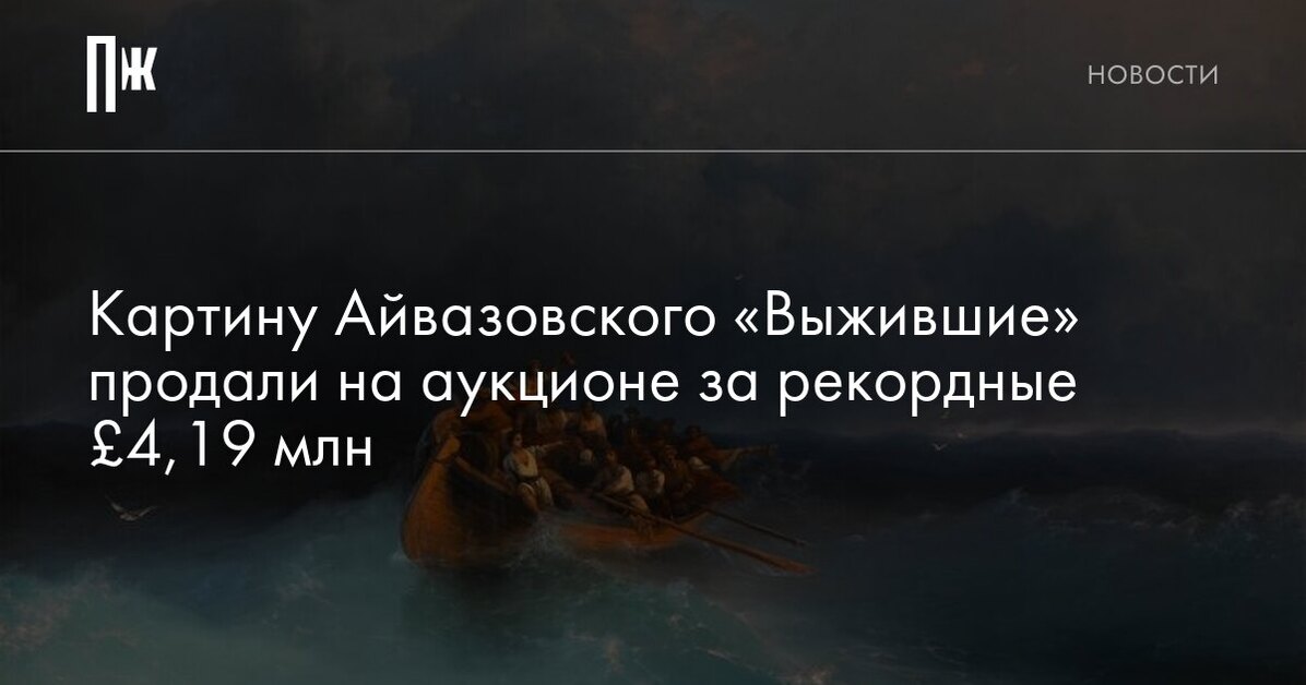 Картину Ивана Айвазовского «Выжившие» 1887 года продали на торгах Sotheby’s за £4,188 млн. Цена стала новым мировым аукционным рекордом на произведения художника. Об этом сообщает Artprice.
