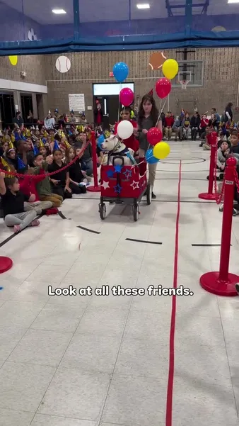 Школьники организовали особенный прием для собаки актовом зале и исполнили Happy Birthday на американском языке жестов, который выучили специально для этого события. Видео с праздника опубликовал владелец Коула, учитель музыки Кристофер Ханна. На кадрах собака в праздничной короне въезжает в зал на инвалидной коляске, окруженная детьми, после чего получает особое лакомство под радостные возгласы школьников.