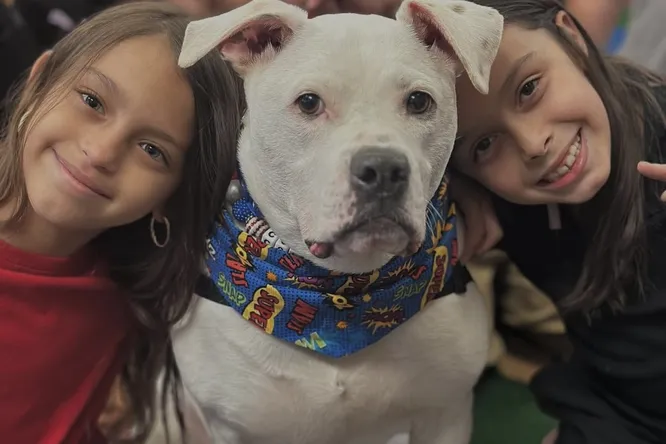 Ранее мы писали о спасенной выброшенной собаке по кличке Симона. Несмотря на трудности, она смогла вернуться к нормальной жизни и теперь «работает» терапевтом в школе — и своей стойкостью вдохновляет детей и сотрудников.
