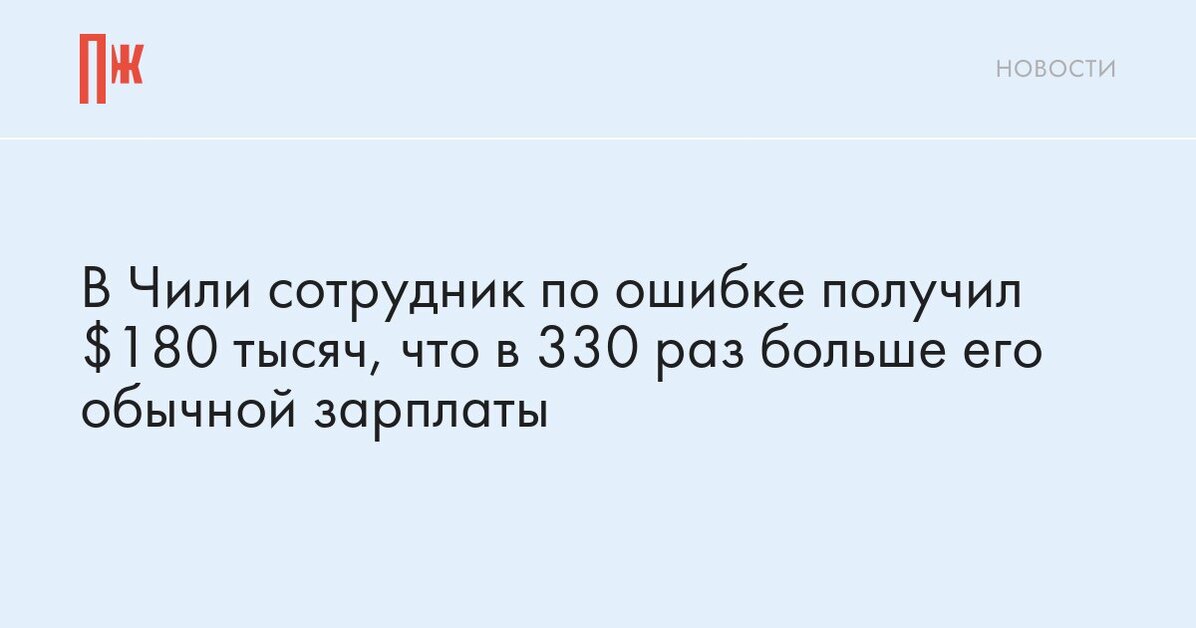 В Чили сотрудник по ошибке получил $180 тысяч, что в 330 раз больше его обычной зарплаты