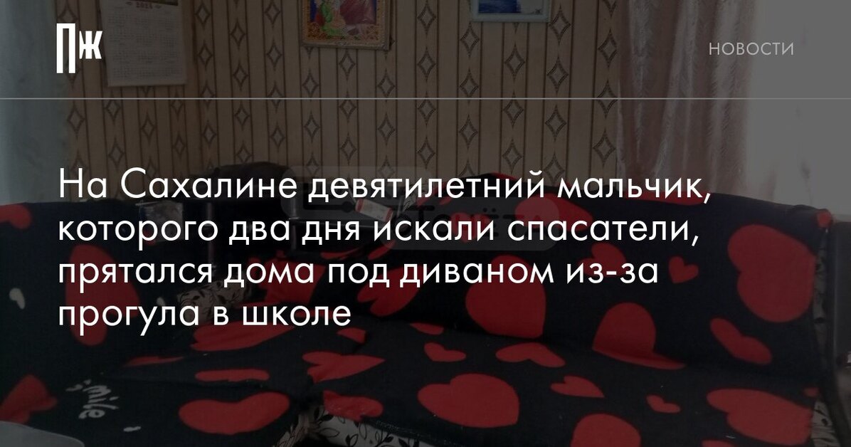 На Сахалине девятилетний мальчик, которого искали спасатели, два дня прятался дома под диваном из-за прогула в школе