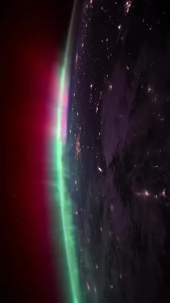 На видео из космоса видно, как зеленые, фиолетовые и красные волны света охватывают территорию США.