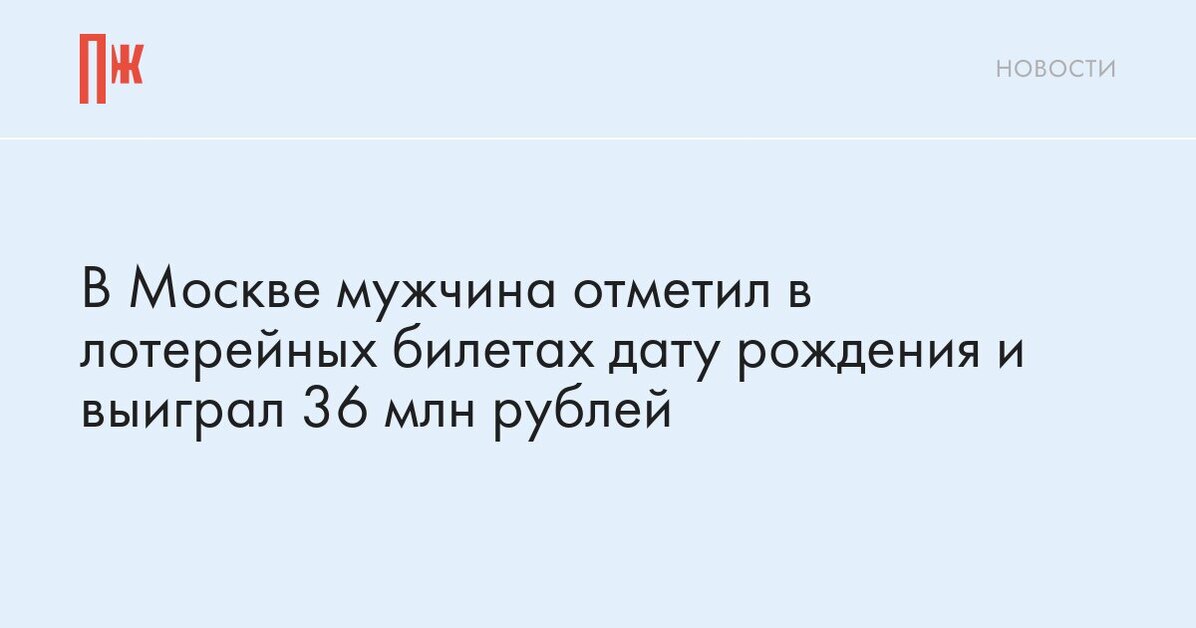 В Москве мужчина отметил в лотерейных билетах дату рождения и выиграл 36 млн рублей