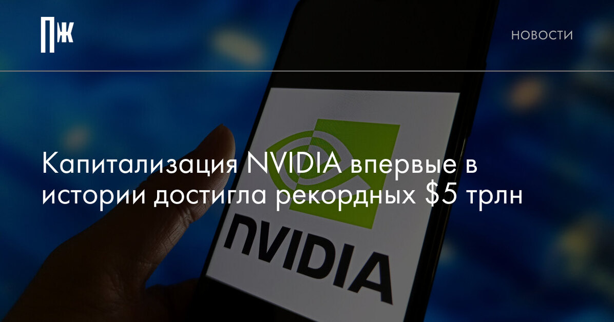 Капитализация NVIDIA впервые в истории достигла рекордных $5 трлн