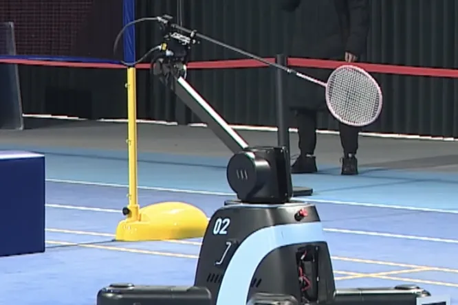 Робот, оснащенный высокоточными системами компьютерного зрения и управления движением и разработанный местной компанией Zhejiang Shenchen Kaidong Technology, продемонстрировал способность рассчитывать траекторию полета волана и реагировать на удары соперника с точностью до миллисекунд.