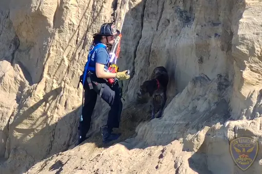 В Сан-Франциско собака сорвалась с обрыва над заливом, приземлилась на узкий выступ и была спасена. Об истории спасения питомца рассказывает New York Post.