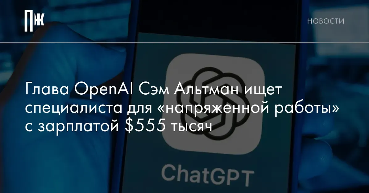 Компания OpenAI ищет «начальника по готовности» (Head of Preparedness) с годовым окладом $555 тыс. Как следует из описания, эта «самая пугающая работа в сфере ИИ» предполагает прямую ответственность за защиту человечества от катастрофических рисков, связанных с развитием нейросетей. Об этом сообщает The Guardian.