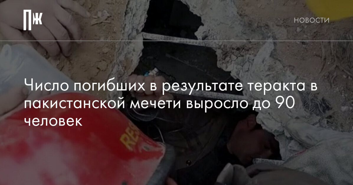 Число погибших в результате теракта в пакистанской мечети выросло до 90 человек
